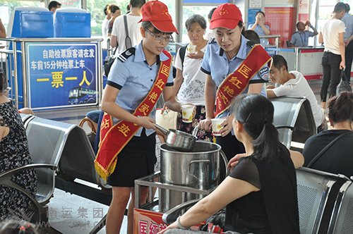 盛夏時節(jié),恰值每年暑運高峰,在南充汽車客運站內(nèi),數(shù)千旅客川流不息,奔波于各自的行程中。為做好旅客乘候車過程中站務(wù)服務(wù)工作,南充汽車客運站組織“匡紅艷愛心班”自愿者服務(wù)隊員,利用業(yè)余時間熬煮綠豆南瓜湯,堅持每天送到候車大廳、售票大廳,送到每一位需要的旅客手中。她們用愛心為候車的旅客送上了一絲絲清涼,一些旅客見此情景深受感動,一位趕乘蓬溪班車的旅客在連續(xù)喝了三杯后感慨地說到“沒想到你們做得這么好,在其他地方我真還沒有見到過”。并問道“你們是每天都送綠豆湯嗎”?愛心班的姐妹們回答到:“在夏日伏天中我們每天都要給旅客送到現(xiàn)場,歡迎你下次來站飲用”。這位旅客連聲稱贊地說“謝謝你們,有時間我一定在網(wǎng)上宣傳你們”!安挥茫灰銈儩M意就是對我們最好的肯定”。為旅客在候車的時候解除暑熱,帶來涼意,是愛心班姐妹們的心愿。當(dāng)志愿者們看到旅客喝著綠豆湯,倦意漸消的情景,她們倍感欣慰。她們知道在這“火熱”的盛夏里,送綠豆湯的小小舉動,溫暖了旅客們的心。 (張蜀慧 王洪)