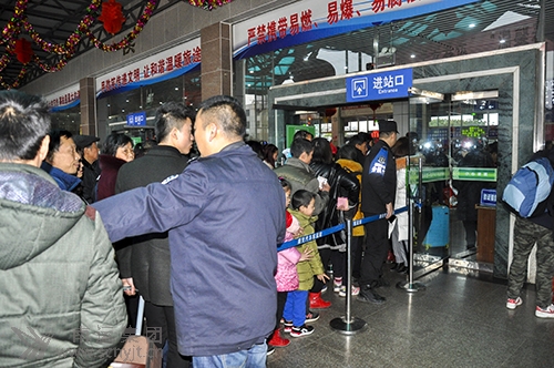 候車(chē)大廳里旅客熙熙攘攘、暖意融融。