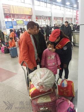 “媽媽!爸爸!我的媽媽吔”,“小朋友,別哭,來,阿姨給你擦擦鼻涕,幫你找媽媽哈!” 這是2019年1月30日發(fā)生在南充汽車客運站候車大廳里的一幕。當日上午10點左右,南充市嘉陵區(qū)金鳳鎮(zhèn)沙壩村的趙治兵、王曉均夫婦帶著5歲的女兒來到車站,準備乘座由該站發(fā)往巴中的客車。進入候車廳后,夫妻兩因上廁所,將女兒一人丟在候車廳等候。由于王曉均患有癲癇病,需要丈夫幫扶,致時間稍長。女兒見爸媽未歸,心里慌亂,開始四處尋找,進而啼哭呼喊。這時,匡紅艷愛心班“小紅帽”站務人員楊琴發(fā)現(xiàn)了她,立即上前將孩子抱起,一邊安慰,一邊擦鼻涕的把孩子帶到咨詢臺前,通過廣播發(fā)布尋人信息,將孩子的父母找到!爸x謝,謝謝你們車站工作人員”。孩子的爸爸拉著孩子的手激動的說。“不用謝,這是我們應該做的”。楊琴回答道!八膵寢層邪d癇病,我要幫她,所以時間耽誤久了”。趙治兵解釋道。楊琴向他說:“你也不容易,有什么需要,請告訴我們,我們盡力幫助,出門在外,你們一定要注意安全,祝你們一家人旅途愉快”!爸x謝!給阿姨說再見”,趙治兵夫婦說著帶孩子乘車離開了車站。 匡紅艷愛心班在站黨支部的指導下,自春運開始以來,積極開展愛心助力活動,她們利用工作間歇時間和休息時間,有組織地幫助旅客和過往群眾,先后為旅客尋找和看護孩子3人次,協(xié)助辦理購票、進站乘車等58人次,為旅客解困2人次。獲得了旅客群眾的廣泛贊譽。 (李曉光 胡燕)