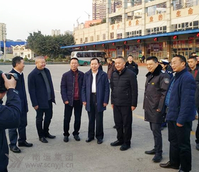 市委常委、嘉陵區(qū)委書記廖倫志(右一)、副市長陳有波(右二)深入南充汽車客運(yùn)站檢查督導(dǎo)春運(yùn)安全工作。