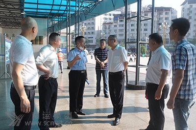 市中級人民法院院長楊敏(右三)在南充汽車客運站檢查掃黑除惡反恐防暴工作