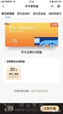 南運集團定制客運南充至閬中、南充至金城、南充至南部線路會員卡重磅來襲,還有南運出行平臺通用會員卡,讓你出行超省,更詳細的活動規(guī)則,快隨小編一起往下看。 2021年的第一份出行特惠! 為給乘客出行提供優(yōu)惠福利,由南運出行打造的定制客運付費會員產(chǎn)品“南充⇌南部隨行卡”“南充⇌閬中隨行卡”“南充⇌金城隨行卡”于1月1日正式上線! 什么是“隨行卡”?簡單來說,就是可以一次購買享多次出行優(yōu)惠。優(yōu)惠力度有多大?購卡后購票5折優(yōu)惠!可享5次!開卡最高可省150元! 活動時間 2021年1月1日—2021年1月31日(31天) 數(shù)量有限,先到先得! 活動規(guī)則 1.您選擇所需的定制客運線路會員卡并完成支付后,系統(tǒng)將自動派發(fā)卡中包含的所有優(yōu)惠券,您可使用優(yōu)惠券去抵扣應(yīng)付訂單金額; 2.優(yōu)惠券可使用的渠道為:南運出行平臺微信小程序; 3.優(yōu)惠券自到賬后30天有效,每天限用1張優(yōu)惠券,請盡快使用; 4.定制客運線路會員卡僅限南運出行指定城際線路可用; 5.優(yōu)惠券僅可“會員卡購買本人”(支付活動的登陸賬號中,常用乘客中的本人)使用,不可替別人購買或購買后將票轉(zhuǎn)售給他人。 2021年的第二份出行特惠! 由南運出行打造的南運暢行卡也將于1月1日正式上線!特別一說,南運暢行卡適用于南運出行平臺所有定制客運線路(南部至閬中線路除外)! 活動時間 2021年1月1日-2021年1月31日(31天) 數(shù)量有限,先到先得 活動規(guī)則 1.您選擇所需的南運暢行會員卡并完成支付后,系統(tǒng)將自動派發(fā)卡中包含的所有優(yōu)惠券,您可使用優(yōu)惠券去抵扣應(yīng)付訂單金額; 2.優(yōu)惠券可使用的渠道為:南運出行平臺微信小程序; 3.優(yōu)惠券自到賬后30天有效,每天限用1張優(yōu)惠券,請盡快使用; 4.南運暢行卡適用于南運出行平臺所有定制客運線路(南部至閬中線路除外)。 5.優(yōu)惠券僅可“會員卡購買本人”(支付活動的登陸賬號中,常用乘客中的本人)使用,不可替別人購買或購買后將票轉(zhuǎn)售給他人。 活動流程 1.識別下方二維碼進入“南運出行”小程序