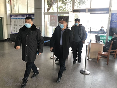 市經(jīng)濟和信息化局局長、市春運工作領導小組辦公室主任石全華(左二)檢查南充汽車客運站春運工作。