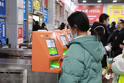該車站持續(xù)優(yōu)化售票組織工作,積極拓展互聯(lián)網(wǎng)、小程序等售票渠道,以及手機(jī)支付等應(yīng)用范圍,充分發(fā)揮10臺自動售(取)票機(jī)的作用,引導(dǎo)旅客使用智能自助購取車票,減少近距離接觸,切實(shí)便捷旅客購票乘車。同時開設(shè)“老弱病殘、孕、軍人購票優(yōu)先窗口”、“農(nóng)民工售票窗口”等3個人工售票窗口,延長開窗時間,調(diào)整窗口功能,確保旅客到站購票不排長隊(duì)。另還新增了1臺導(dǎo)購機(jī),旅客在上面可自主查詢發(fā)班信息。志愿者們分別引導(dǎo)旅客在自助購(。┢睓C(jī)上自行購(取)票,所有旅客自覺保持一米間距,一切井然有序。有位七十歲的大爺徑直走到自助購(。┢睓C(jī)上,在志愿者的引導(dǎo)下,一分鐘不到就買到車票,他十分高興地說:“現(xiàn)在買票不用排隊(duì)了,直接在機(jī)器上購取票,十分快速方便!” 外面寒風(fēng)冷冽,站內(nèi)暖意融融。頭戴小紅帽的“匡紅艷愛心班”站務(wù)人員在售票廳和候車廳不停地來回穿梭著,積極熱情地為旅客提供乘車咨詢、提拉行李、扶老攜幼、搬運(yùn)行李、購票取票、提供熱水等便民志愿服務(wù),將“情滿旅途”志愿服務(wù)融入旅客出行的每個細(xì)節(jié),切實(shí)保障每位旅客能舒心返崗,讓旅客們感受來自南運(yùn)人的溫暖。