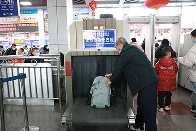 在進(jìn)站安檢區(qū),“大包小包請過安檢”的小喇叭溫馨地提示著旅客。2臺行包安檢機(jī)不停地工作著,安保人員警惕地值守著,嚴(yán)格按照“逢包必檢、逢液必查、逢疑必問”原則開展安檢工作,所有乘客均須接受安檢人員手檢,所有包裹、行李均須經(jīng)過安檢機(jī),所有液態(tài)物品均須接受安全檢驗(yàn),堅(jiān)決杜絕漏檢現(xiàn)象,嚴(yán)防易燃易爆等危險品、管制刀具和國家明令禁止攜帶的違禁物品進(jìn)站上車,堅(jiān)決把危險品堵在站外和車下。
