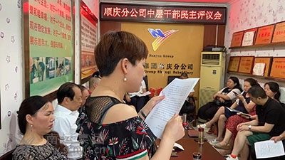 6月13日上午8:30時,順慶分公司中層干部民主評議會在分公司會議室召開。民主評議領(lǐng)導(dǎo)小組及12名中層干部參加了會議,這是分公司深入推進干部考核工作的一項重要舉措。分公司成立了民主評議領(lǐng)導(dǎo)小組,含集團公司的員工持股會理事和職工代表。從今年5月15日開始準備,要求每一個參與評議的中層干部對自己2021年5月至2023年5月兩年的工作進行回顧總結(jié),書面述職報告于6月2日前上報給分公司黨總支。 本次民主評議采取無記名投票的方式,評議內(nèi)容包括干部的“德、能、勤、績”四個方面。中層干部述職后,評議打分采取自己評分(占總分10%)、中層干部互相打分(占總分50%)、領(lǐng)導(dǎo)小組打分(占總分40%)的方式進行,對綜合評分低于80分的干部將免職,評議結(jié)果將作為干部考核的重要依據(jù)。 在評議前,分公司黨總支書記斯明堯強調(diào)了民主評議的重要性和必要性,鼓勵干部們勇于接受評議,認真聽取員工的意見和建議,不斷提高自己的工作能力和素質(zhì)。 經(jīng)過一個上午的評議,順利完成了12名中層干部民主評議工作。斯明堯當場對每一個參加評議的中層干部述職報告以及實際工作進行了點評。 分公司將根據(jù)評議最終結(jié)果,對評選出的優(yōu)秀干部進行表揚,對需要改進的干部(綜合評分后三位)將進行針對性培訓(xùn)和指導(dǎo)。此次中層干部民主評議工作充分體現(xiàn)了分公司對干部隊伍建設(shè)的高度重視和關(guān)注,也為分公司未來的持續(xù)發(fā)展奠定了堅實的基礎(chǔ)。 (順慶分公司 何敏 王衛(wèi))