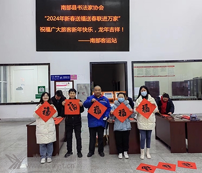 南部縣書法家協(xié)會到南部汽車客運站 開展2024年新春送福送春聯(lián)進萬家活動
