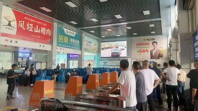 南充汽車客運站候車室LED顯示屏播放大會現(xiàn)場直播,吸引旅客駐足觀看。