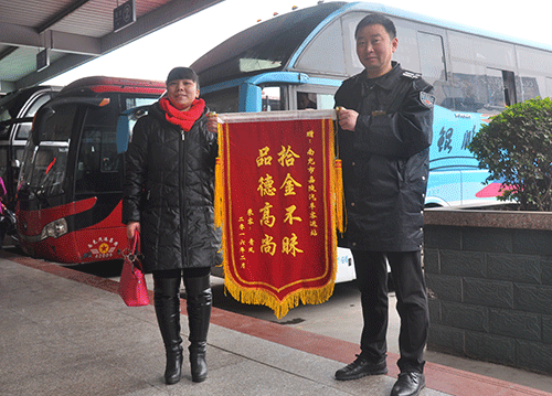 一句“謝謝”不足以表達南充市民青鳳對南充汽車客運站工作人員的感謝,一句“這是我們應該做的”詮釋了南充汽車客運站工作人員踐行“質(zhì)量第一、旅客至上”的服務宗旨。2016年2月21日上午,在南充汽車客運站發(fā)班站臺上,青女士將寫有“拾金不昧、品德高尚”的錦旗送到車站服務質(zhì)量管理科科長王洪手中,感謝車站培養(yǎng)出來的優(yōu)秀員工,感謝駕駛員不被金錢所誘惑拾金不昧的高尚品格,再次為社會傳遞了正能量。
