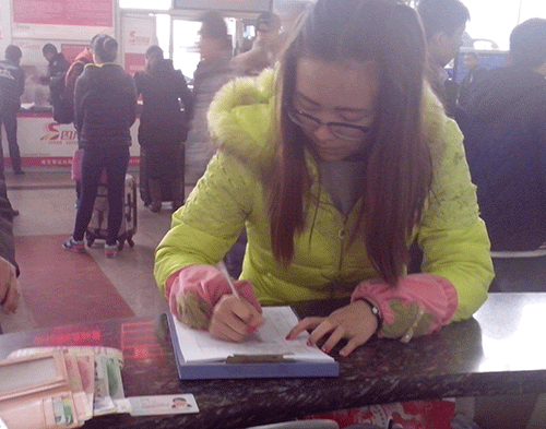 旅客黃鳳英在認領(lǐng)登記掛包丟失的物品