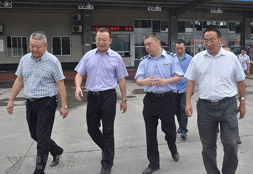 遂寧市交通運(yùn)輸局黨委委員、副局長(zhǎng)于禮軍(左二)檢查南充汽車客運(yùn)站的防汛工作
