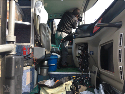 圖為安裝人員正在對(duì)衛(wèi)星定位車載視頻監(jiān)控系統(tǒng)進(jìn)行安裝