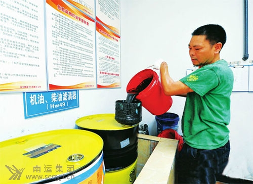 南充精誠汽車維修分公司修理技工將廢棄油(液)集中收集起來