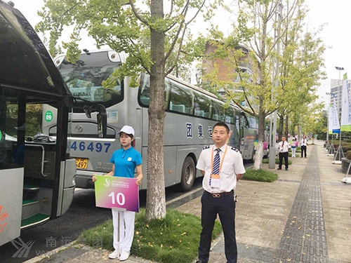南運集團歐洲之星豪華大巴駕駛員在遂寧市恭候中外嘉賓乘車