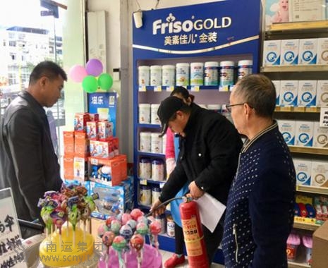 鴻運(yùn)實(shí)業(yè)分公司消防安全員為經(jīng)營戶講解滅火器的正確使用方法