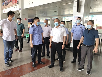 副市長陳有波(右三)在南充汽車客運(yùn)站檢查防疫及安全工作。