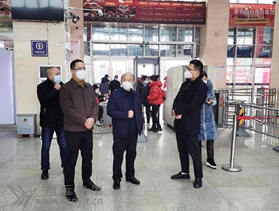 市交通運輸局黨委委員、副局長蔣勇(左二)在營山汽車客運站檢查春運工作。