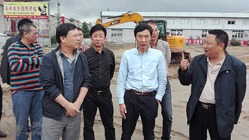 省運管局副局長張洪(左二)在南部汽車站遷建項目施工現(xiàn)場督導(dǎo)