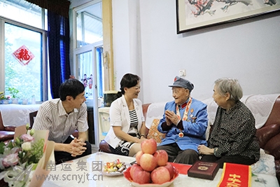 市委組織部副部長、老干部局局長劉彬(左二),南運集團黨委書記、董事長、總經(jīng)理王希平(左一),看望慰問南運集團老紅軍曹守成。