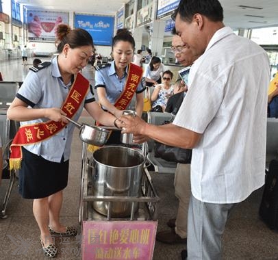南充汽車客運(yùn)站“匡紅艷愛心班”為旅客夏日送清涼