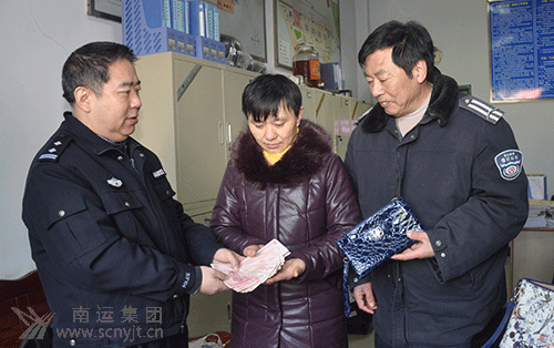 “太感謝你們車站的同志了,我這一年辛辛苦苦打工掙來的錢終于找到了,這下我可以高高興興的回家過年了” 。這一幕發(fā)生在2017年1月12日南充汽車客運(yùn)站保衛(wèi)科辦公室里。 1月11日上午八時(shí)左右,車站值班站長黨洪金正巡視到站前廣場出租車下客處,發(fā)現(xiàn)一輛出租車停放在出租車入口處,堵塞了車輛通道但是車上卻沒有駕駛員。黨站長立即大聲詢問出租車駕駛員到哪里去了。不一會(huì)兒就看見一個(gè)男的手拿一個(gè)花提包急匆匆的從車站候車大廳里面跑了出來,坐上了出租車駕駛座。黨站長上前詢問是怎么回事,駕駛員回答到有一個(gè)坐出租車的人下車時(shí)遺漏了這個(gè)花提包,他發(fā)現(xiàn)后立即進(jìn)入候車大廳尋找卻沒有尋找到坐車的旅客,正焦急不知道該怎么辦,黨站長了解情況以后主動(dòng)承擔(dān)起尋找旅客的責(zé)任。黨站長帶著包會(huì)同車站派出所副所長何春林警官一起清點(diǎn)了包里的物品,包里竟然有8880元人民幣現(xiàn)金,以及身份證(張明清,女,51歲,儀隴縣義門鄉(xiāng)轉(zhuǎn)包河村五組18號(hào))一張.黨站長和何所長感到此事的緊迫性,旅客在外打工掙點(diǎn)錢不容易,丟失了這么多的錢一定十分的焦急。而且現(xiàn)在已是年終了,為了讓丟包的旅客過上一個(gè)快樂、祥和的春節(jié),何副所長立即從身份證上入手,在公安的內(nèi)部網(wǎng)上查找丟包旅客的相關(guān)信息。幾經(jīng)周折終于找到張明清堂哥的聯(lián)系電話,告知其堂哥讓張明清立即到南充汽車客運(yùn)站保衛(wèi)科來領(lǐng)取丟失的物品。 1月12日上午9時(shí)左右張明清在車站保衛(wèi)科見到丟失的物品時(shí),緊緊的握住了黨站長及何副所長的手一個(gè)勁的說著“謝謝、謝謝、太感謝了,你們真是好人啊。” (黃明 喬武林)