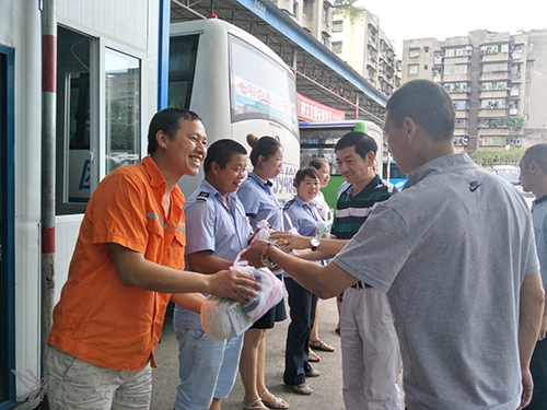 7月19日下午,烈日炎炎,高坪分公司黨總支書記、工會主席林仕先帶領(lǐng)相關(guān)部門負(fù)責(zé)人,攜帶冰糖、藿香正氣液、風(fēng)油精、毛巾等防暑降溫物品,為高坪車站堅守在烈日酷暑下的一線站務(wù)人員送清涼。林書記說,他代表集團(tuán)公司慰問一線員工,希望員工們發(fā)揚戰(zhàn)高溫、斗酷暑的奉獻(xiàn)精神,抓好暑運、汛期的安全生產(chǎn)工作,同時要注意高溫防暑,保重自己的身體。