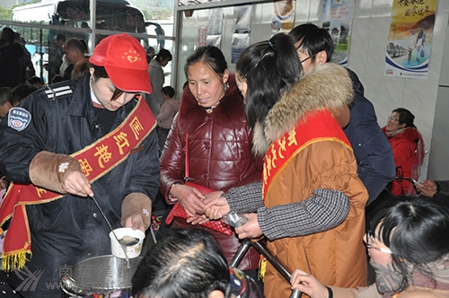 在中國人的傳統(tǒng)習(xí)俗中,餃子是春節(jié)除夕合家團(tuán)圓的喜慶食物,大年三十吃餃子,幾乎是南方人和北方人的共識。 2月21日,農(nóng)歷正月初六,轉(zhuǎn)眼間,春節(jié)假期即將結(jié)束,大量回家過節(jié)的人們,都在這一天,紛紛踏上返崗的旅程。南充汽車客運(yùn)站候車大廳、售票廳內(nèi)人流如織,有夫婦相伴而行的、有父子挎囊同走的、也有拖家?guī)Э谂e家遷徒的,為使旅客們在走出站門、踏上離開家鄉(xiāng)行程的時(shí)刻,再次感受到年的味道,感受到合家團(tuán)圓的幸福味道。南充汽車客運(yùn)站黨支部堅(jiān)持以開展“情滿旅途”活動(dòng)為主題,組織“匡紅艷愛心班”、“小紅帽” 志愿者服務(wù)隊(duì),為旅客煮水餃、燒茶水。 當(dāng)天上午九點(diǎn),她們將剛買回的十斤 “思念”水餃分兩批煮好,先后送到候車大廳,端到旅客手中,受到旅客歡迎。“有需要吃水餃的同志,請接受我們的服務(wù),這是我們南充客運(yùn)站為大家免費(fèi)提供的,祝您們一路平安,新年好運(yùn),記住家鄉(xiāng)”!靶〖t帽”志愿者們一邊為旅客舀著餃子,一邊向旅客宣傳!鞍眩≈x謝你們啰,我們?nèi)胰硕汲渣c(diǎn),當(dāng)做在這里又團(tuán)了一個(gè)年”。一對帶著兩個(gè)小孩的夫婦動(dòng)情地說!巴,您們這一家人是到哪兒去呀?”“我們到貴陽去,家里老人無力照顧,我們只好把孩子一起帶過去。這一走,明年還不知道能不能回來喲,真是謝謝你們了”!安挥弥x,應(yīng)該的,我們每年都要這樣做,歡迎您們下次再來”,“家鄉(xiāng)的人真好,我下次回來,爭取能夠再吃到你們煮的餃子”!耙欢!”這一問一答,道出了路上行人的別樣心情,也表現(xiàn)了南充汽車客運(yùn)站溫馨服務(wù)的一個(gè)側(cè)面。 (李曉光 王洪)