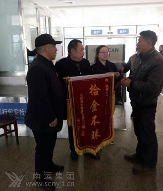 乘客王強給儀隴汽車客運站贈送“拾金不昧”的錦旗