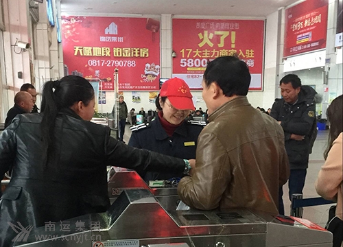“匡紅艷愛心班”小紅帽熱情引導(dǎo)旅客自助檢票