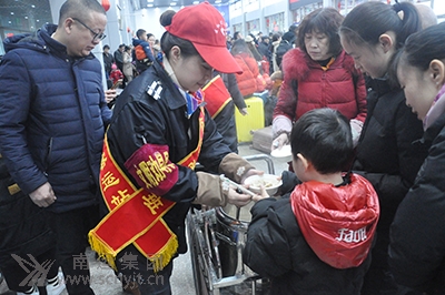 2019年2月10日,是農(nóng)歷已亥年的正月初六。由于春節(jié)假期即將結(jié)束,大量鄉(xiāng)親踏上了返崗的旅途。南充汽車客運(yùn)站候車大廳內(nèi)人頭攢動(dòng),熙熙攘攘。上午9:00時(shí)左右,正是客流高峰,只見兩名身穿客運(yùn)站工作制服、肩披“南充汽車客運(yùn)站匡紅艷愛心班”綬帶,頭戴小紅帽的年輕站務(wù)員,推著手推車。她們就是車站“匡紅艷愛心班”第二屆班長胡燕和成員李莉,一邊慢慢行走,一邊說道:“各位旅客大家好,今天是大年初六,你們就要離開家鄉(xiāng)遠(yuǎn)行了。我們南充汽車客運(yùn)站專門為大家準(zhǔn)備了水餃,給大家餞行,有需要的請告訴我們。” 一對旅客夫婦主動(dòng)詢問道:“好多錢一碗?”胡燕說:“不要錢,是我們車站免費(fèi)給大家提供的!薄澳銈冘囌具這么好哇,那給我們來兩碗嘛,我們從鄉(xiāng)下來,還真的沒吃早飯。”胡燕和李莉?qū)赏胨?/span>熱情地送到了這對旅客夫婦手中。旅客夫婦說:“謝謝你們,沒想到在車站又嘗到了年味! 見此情景,一些旅客陸續(xù)聚攏到推車跟前,“阿姨!我要吃餃子。”一名小朋友走近推車喊道。“要得,阿姨給你舀。”胡燕和李莉拿出飯盒筷子,舀好一碗又一碗,送到需要的旅客手中。 “大哥,你到哪里去?”胡燕一邊忙著端水餃,一邊問一位前來的旅客。“我到貴陽,明天就要上班了,路程長,今天我想可能要餓肚子,沒想到你們還準(zhǔn)備了水餃,你們車站真好,給我留下了今年春節(jié)家鄉(xiāng)的美好印象,謝謝你們!”“不用謝,這是我們應(yīng)該做的。我們車站每年初六都要為大家煮水餃,給大家提供方便,祝你旅途愉快!焙嗷卮鸬!澳銈兿氲弥艿,謝謝你們!”旅客吃著熱騰騰的水餃連聲說道。 整整一個(gè)上午,胡燕和李莉送了一車又一車,直至將40斤水餃全部送完。她們看見旅客舒心地坐在候車大廳里,滋滋有味地吃著水餃,十分愉快開心。 春節(jié)期間,南充汽車客運(yùn)站深入開展“情滿旅途”活動(dòng),全力做好農(nóng)民工返鄉(xiāng)返崗關(guān)愛服務(wù)工作,熱心為旅客送開水、做好事、猜謎語、搞游園等。其中,大年初一送湯圓和大年初六送水餃,是一直堅(jiān)持開展的兩項(xiàng)愛心志愿服務(wù)活動(dòng),自2010年春運(yùn)開始,連續(xù)九年堅(jiān)持不懈,受到了廣大旅客及社會(huì)各界的廣泛好評。一些旅客紛紛拍照留影,在網(wǎng)絡(luò)媒體上自發(fā)傳播,產(chǎn)生了良好的社會(huì)影響。 (李曉光)
