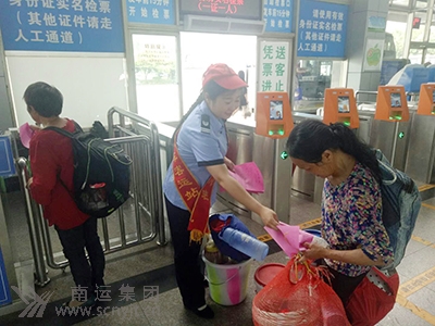 為貫徹落實全省農民工服務平臺建設電視電話會議精神,南充汽車客運站黨支部、工會積極響應,多措并舉,堅持開展“情滿旅途”活動,不僅春運做好農民工返鄉(xiāng)返崗運輸服務保障工作,而且始終堅持日常為廣大農民工出行獻愛心送溫暖。 在車站售票廳志愿者服務點“匡紅艷愛心班”專門設立了“農民工服務臺”,為返鄉(xiāng)農民工和過往旅客提供服務,發(fā)放各類法律、法規(guī)的政策宣傳冊和宣傳傳單,促進農民工朋友們增強維權意識和安全意識,從而對新形勢下黨和國家的便民舉措有了更深了解和認識。 在售票廳、候車廳分別設立了“農民工專用售票窗口”和“農民工專用綠色檢票通道”、“愛心驛站”。工作人員為農民工提供現(xiàn)場引導網(wǎng)絡購票、取票、檢票、進站乘車等各項服務,使農民工朋友們返鄉(xiāng)出行更加方便。同時,為了使農民工朋友們感受到家的溫暖,還在站內免費提供開水、愛心雨傘、便民箱、藥箱、針線包和舒適的軟座椅。這些便民舉措,使廣大農民工和旅客們充分感受到優(yōu)質服務帶來的便捷和溫馨,真正體會到站如到家的親切感。 (彭慶紅)