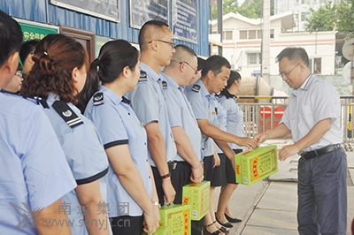 連日來,我市持續(xù)高溫天氣“高燒不退”,廣大員工每天奮戰(zhàn)在運(yùn)輸生產(chǎn)一線非常辛苦。8月28日下午,市總工會黨組書記、常務(wù)副主席官曉林等一行在集團(tuán)公司黨委副書記、工會主席胡仕杰陪同下,深入南充汽車客運(yùn)站,看望慰問高溫酷暑下堅(jiān)守崗位的一線員工。 官曉林一行為堅(jiān)守崗位的一線員工,送上了藿香正氣液、毛巾、香皂及清涼飲料等防暑降溫物品。一句句“你們辛苦了,謝謝大家!”充分表達(dá)了市總工會領(lǐng)導(dǎo)對員工們在高溫下堅(jiān)守崗位的深情厚愛。同時叮囑大家要做到勞逸結(jié)合,注意防暑降溫,保護(hù)身體健康。他說:“道路旅客運(yùn)輸工作很辛苦、很光榮,非常重要。大家用辛勤的汗水換來了市民出行的便捷。希望大家要始終堅(jiān)持安全第一,旅客第一,服務(wù)第一,進(jìn)一步做好旅客運(yùn)輸組織和服務(wù)保障工作,確保旅客走得安全、走得順利、走得滿意! 據(jù)悉,市總工會此次共給南運(yùn)集團(tuán)發(fā)放200份防暑降溫物品及清涼飲料,在炎炎夏日給員工們送來聲聲問候,帶來絲絲涼意,極大地鼓舞了一線員工的士氣,激發(fā)了一線員工的熱情,大家紛紛表示,一定不辜負(fù)上級領(lǐng)導(dǎo)的關(guān)懷愛護(hù),繼續(xù)發(fā)揚(yáng)戰(zhàn)高溫,斗酷暑的精神,以更高的工作熱情,全力以赴投入客運(yùn)工作之中,為市民安全出行做出新的更大的貢獻(xiàn)。 (王洪)