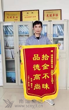 營(yíng)山鴻運(yùn)的哥唐鵬程收到錦旗 3月20日早晨,南充鴻運(yùn)出租汽車有限公司營(yíng)山分公司辦公室里一片歡聲笑語(yǔ),縣運(yùn)管局兩位工作同志親自把一面錦旗送到鴻運(yùn)公司來(lái),并連聲稱贊“你們鴻運(yùn)出租公司的駕駛員真是高素質(zhì)、高風(fēng)格!”錦旗上面“拾金不昧 品德高尚”八個(gè)紅色大字,在陽(yáng)光下熠熠光輝。 3月19日傍晚,營(yíng)山鴻運(yùn)出租汽車川R95BW6駕駛員唐鵬程忙著攬客,從營(yíng)山縣東門(mén)口搭上一位女士乘客,唐師傅禮貌的問(wèn)詢:“你好,請(qǐng)問(wèn)去哪?”“到永輝超市!薄昂媚!請(qǐng)坐好!” 到達(dá)目的地后,乘客掃碼付款后下了車。前方是紅綠燈,唐師傅需要繞行調(diào)頭,在車子調(diào)頭的時(shí)候唐師傅習(xí)慣性的看了一下后視鏡,他發(fā)現(xiàn)后排座椅上放著一個(gè)黑色包包。心想著這肯定是剛才下車的乘客落下的。別人丟了包包肯定很著急,于是他又回到剛才乘客下車的位置,等了一會(huì)兒還是沒(méi)有看見(jiàn)失主的身影。 由于那個(gè)時(shí)間點(diǎn)正是乘客打車的高峰期,不斷有人問(wèn)“師傅,走嗎?”唐師傅等到有點(diǎn)著急,這可怎么辦呢?看看包包里有沒(méi)有失主的聯(lián)系方式吧,唐師傅打開(kāi)包,發(fā)現(xiàn)里面有一部蘋(píng)果電腦、一個(gè)蘋(píng)果手機(jī),還有大量現(xiàn)金,數(shù)了一下一共一萬(wàn)五千元。等不到失主,干脆把包包交到派出所去,請(qǐng)警察同志幫忙尋找失主。于是,唐師傅將包包交到附近的派出所報(bào)了案,說(shuō)明情況后匆匆離開(kāi)了。 第二天,派出所民警通過(guò)相關(guān)線索找到了失主姚女士將物品歸還。姚女士拿到失而復(fù)得的包包,物品和現(xiàn)金一樣都沒(méi)有少,對(duì)鴻運(yùn)的哥拾金不昧的這種行為大加贊賞和感動(dòng)。并立即做了一面大紅錦旗要當(dāng)面感謝這位好心的的哥,由于不知道的哥是哪家出租公司的,只有拜托縣運(yùn)管局幫忙,將錦旗送到的哥的手中,以表達(dá)對(duì)唐師傅誠(chéng)摯的感謝! 拾金不昧是我們中華民族的傳統(tǒng)美德,是一個(gè)人高尚道德情操的體現(xiàn)。唐鵬程師傅拾金不昧的行為充分體現(xiàn)了鴻運(yùn)出租公司駕駛員優(yōu)秀的個(gè)人品質(zhì)和良好的社會(huì)公德,為鴻運(yùn)出租公司贏得了良好的聲譽(yù),是廣大駕乘人員學(xué)習(xí)的榜樣。對(duì)此,鴻運(yùn)出租公司獎(jiǎng)勵(lì)了唐師傅400元現(xiàn)金,以此鼓勵(lì)他傳播好人好事弘揚(yáng)社會(huì)正能量的行為。這樣的正能量讓我們倍感溫暖,這樣的好人好事必將越來(lái)越多! (陳弘)