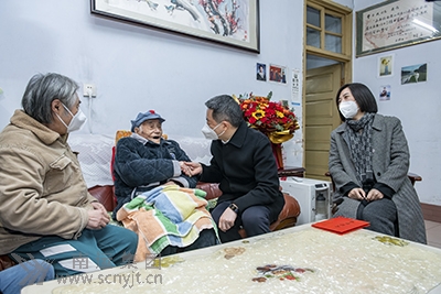 值此新春佳節(jié)來臨之際,1月16日下午,市委常委、市委組織部部長王雙全,市委組織部副部長、市委老干部局局長許琪一行在南運集團黨委書記、董事長、總經(jīng)理王希平的陪同下,登門看望慰問了南充市目前唯一健在,108歲高齡的南運集團老紅軍曹守成,把黨和政府的關(guān)懷與溫暖送到曹老紅軍家中。 “曹老紅軍,新年好!我受朱家德書記的委托,今天特意來給您老人家拜年了,祝您及家人新春快樂!”一進(jìn)門,王雙全就親切地握著曹老的手,與曹老促膝而坐,拉家常、問冷暖,詳細(xì)了解曹老的身體生活狀況和實際困難,認(rèn)真傾聽曹老及家人的心聲,并代表省委、省政府和市委、市政府為曹老送上了誠摯的新春祝福、慰問金和鮮花。曹老臉上一直洋溢著開心幸福的笑容。屋外雨雪紛紛,寒氣逼人,屋內(nèi)歡聲笑語,其樂融融。 “感謝黨和政府對我們的親切關(guān)懷,感謝老干部局和南運集團的悉心照顧,老干局還派了專門的家庭醫(yī)生和社工上門服務(wù),我父親目前各項指標(biāo)正常,作息規(guī)律,有時候還要唱紅歌呢!辈芾霞t軍兒媳說道?吹讲芾霞t軍在家人和市老干局、市交通運輸局與南運集團的精心照顧下,雖已到茶壽之年但身子骨仍然硬朗,如今已是五世同堂、兒孫繞膝,王雙全十分高興。 王雙全強調(diào),曹老紅軍是我們黨的寶貴財富,照顧好曹老紅軍是一項光榮的政治責(zé)任,我們要永遠(yuǎn)銘記老紅軍的豐功偉績,傳承和發(fā)揚長征精神,走好建設(shè)現(xiàn)代化南充新的趕考之路。并囑托曹老家人、相關(guān)部門和南運集團要一如既往地關(guān)心好、照顧好曹老,深入細(xì)致地做好各項服務(wù)保障工作,幫助解決曹老的實際困難,為曹老提供更加親情化、個性化、精準(zhǔn)化服務(wù),讓曹老紅軍安度晚年、頤養(yǎng)天年、益壽延年。 市委老干部局安置科科長劉濤、服務(wù)管理科副科長彭良全,集團公司黨委副書記、工會主席鮮志強陪同參加慰問。 (黨群辦)
