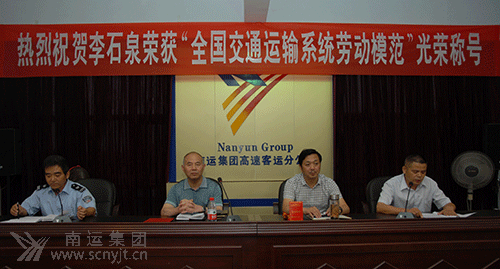 高速客運(yùn)分公司黨支部副書記侯進(jìn)主持會(huì)議,副經(jīng)理龐林宣讀了中華人民共和國(guó)人力資源和社會(huì)保障部、中華人民共和國(guó)交通運(yùn)輸部“關(guān)于交通運(yùn)輸系統(tǒng)勞動(dòng)模范”表彰決定?燔嚳瓦\(yùn)分公司駕駛員李石泉榮獲表彰。