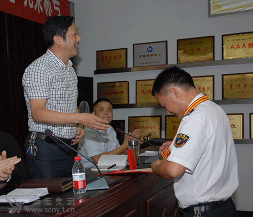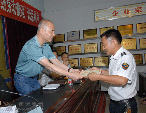南運(yùn)集團(tuán)黨委副書記、工會(huì)主席李遠(yuǎn)勤到會(huì),并與副總經(jīng)理岳軍一同為李石泉頒發(fā)了證書和獎(jiǎng)?wù)?br />