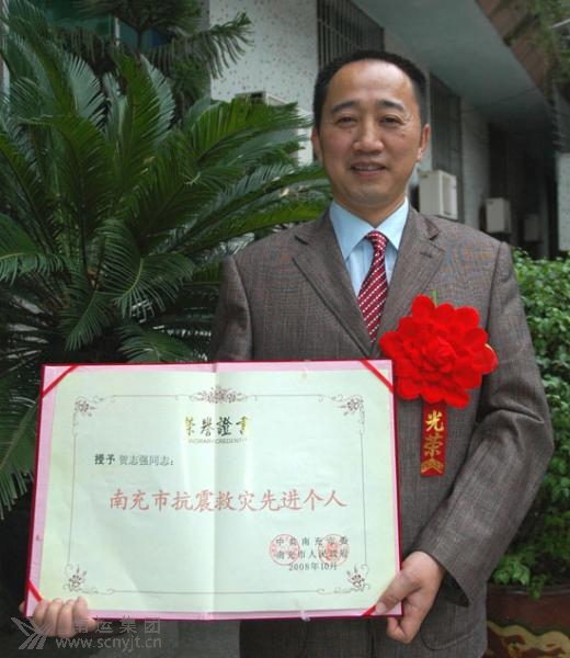 圖為藍光公司經(jīng)理岳軍被市委、市政府授予“南充市抗震救災(zāi)先進個人”稱號