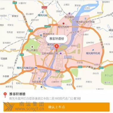南充和岳池城區(qū)均可享受上門接送服務,但具體請以訂車時顯示的接送范圍為準哦!粉色區(qū)域為接送范圍。