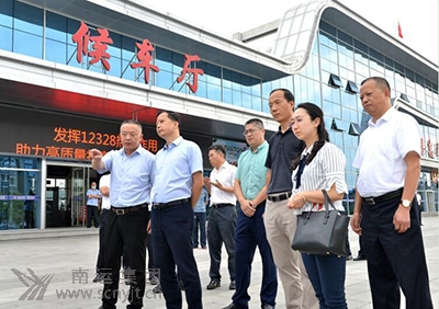 四川省交通運(yùn)輸廳黨組成員、副廳長寧堅(jiān)(左二)、南充市副市長陳有波(左一),交通運(yùn)輸部運(yùn)輸服務(wù)司綜合運(yùn)輸處副處長馮立光(右三)和省交通運(yùn)輸廳運(yùn)輸管理處處長雷磊一行在營山汽車客運(yùn)站調(diào)研。