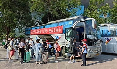 炎炎夏日里,三輛印有“南運集團”醒目大字,掛著《南充汽車客運站校園直通車》鮮紅標語的大巴車,整齊的擺放在西華師范大學校園內,6名穿著統(tǒng)一工裝,肩披綬帶的工作人員,站立在車旁。他標志著,2022年暑期校園直通車正式啟動。 暑假來臨前期,該站及早準備,組織站務人員深入校園,開展各種形式的宣傳、告知活動,同時對老師和同學們預期乘車情況進行摸底排查,為師生們提供現(xiàn)場“客運咨詢”服務,積極尋找?guī)熒鷤兂塑囯y、行李轉運難、打車費用高等問題的解決方法,為老師和同學們開通了一條安全、便捷、溫馨的回家路。 7月7日早上7:30分,第一批直通車走進校園,同學們提著行李箱,在車站工作人員的引導下,排隊有序上車,臉上洋溢著無比輕松的笑容!罢埻瑢W們帶好隨身物品,注意腳下安全”、“同學你先上,我給你拿行李箱”、“請戴好口罩,做好自我防護”……車站工作人員在現(xiàn)場引導、宣傳并積極提供全方位服務。 “這是我大學的第一個暑假,不用出校門就能直接去汽車站乘車,太方便了!薄半m然離家千里,但我切身感受到了南充汽車客運站像家一樣的親情服務。”第一次坐直通車返鄉(xiāng)的大學生陳軍和同學們一邊高高興興的趕乘直通車,一邊和服務的車站工作人員說道。家住宜賓市的大學生孫康俊激動地說;“車站和學校無縫銜接,讓大家不出校園就坐上回家的汽車,不僅可以減少疫情感染的風險,還省去了轉車的煩惱,非常方便,特別貼心。”對車站的這一舉措,師生員工們紛紛表示感謝。 (彭慶紅)