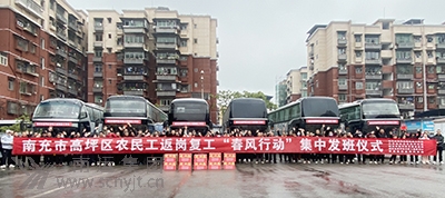 南充市高坪區(qū)農民工返崗復工“春風行動” 集中發(fā)班儀式在高坪汽車客運站舉行